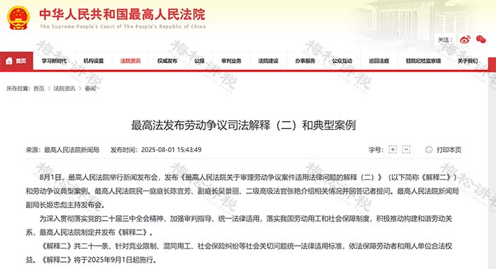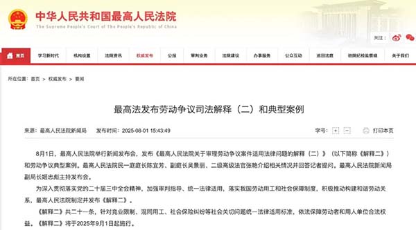 8月1日,最高法正式發(fā)布了《勞動(dòng)爭議司法解釋和典型案例(二)》