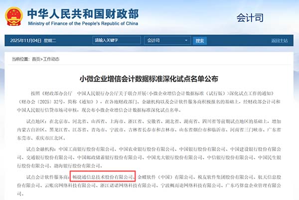 入選本次試點服務(wù)商,是對暢捷通長期深耕小微企業(yè)數(shù)智化轉(zhuǎn)型服務(wù)領(lǐng)域的肯定。作為連接廣大小微企業(yè)財稅數(shù)智化管理與金融機構(gòu)信貸評價的關(guān)鍵一環(huán),暢捷通肩負(fù)著重要的責(zé)任。