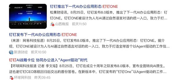 是同樣以“AI”為核心,但戰(zhàn)略路徑截然不同的——釘釘,其“釘釘One”產(chǎn)品的發(fā)布,同樣體現(xiàn)了向“一體化”邁進(jìn)的思路。