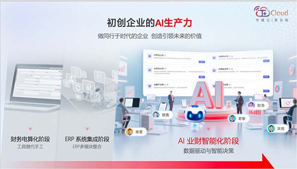 隨著全球AI技術(shù)浪潮席卷各行各業(yè),小微企業(yè)如何搭乘這班快車,實(shí)現(xiàn)業(yè)財(cái)管理的智能化升級?暢捷通T+Cloud專屬云普及版全面升級,以“AI普及業(yè)財(cái)”為核心理念,旨在幫助小微企業(yè)低成本、高效率地實(shí)現(xiàn)數(shù)智化轉(zhuǎn)型。