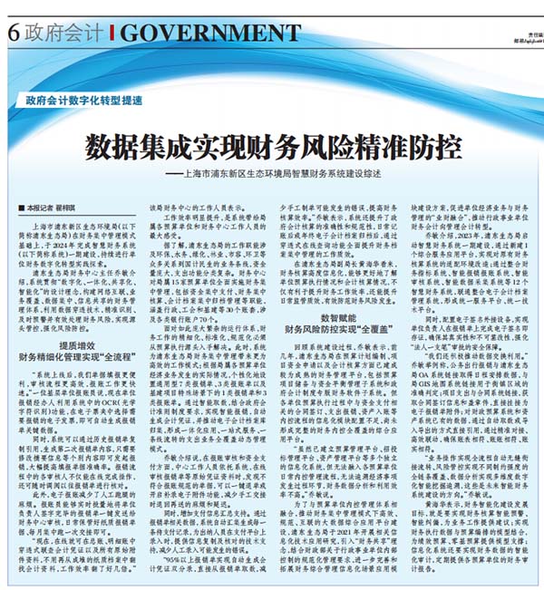 在浦東生態(tài)局副局長黃海華看來,財務(wù)核算高度信息化,能夠更好地了解單位預(yù)算執(zhí)行情況和會計核算情況,不僅有利于提升財務(wù)工作效率,還能提升日常監(jiān)管質(zhì)效,有效防范財務(wù)風(fēng)險發(fā)生。