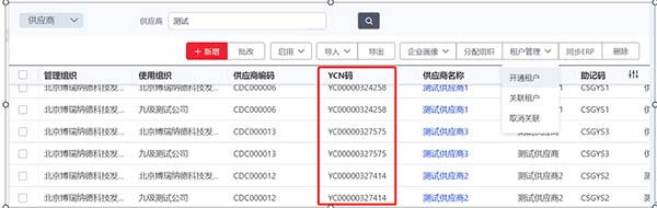 已經(jīng)開(kāi)通和關(guān)聯(lián)租戶的供應(yīng)商在供應(yīng)商檔案列表有YCN碼就是供應(yīng)商在平臺(tái)的唯一身份證號(hào)碼。只要有這個(gè)號(hào)碼,就可以進(jìn)行采購(gòu)合同的協(xié)同。下面就詳細(xì)講采購(gòu)合同協(xié)同的操作過(guò)程。